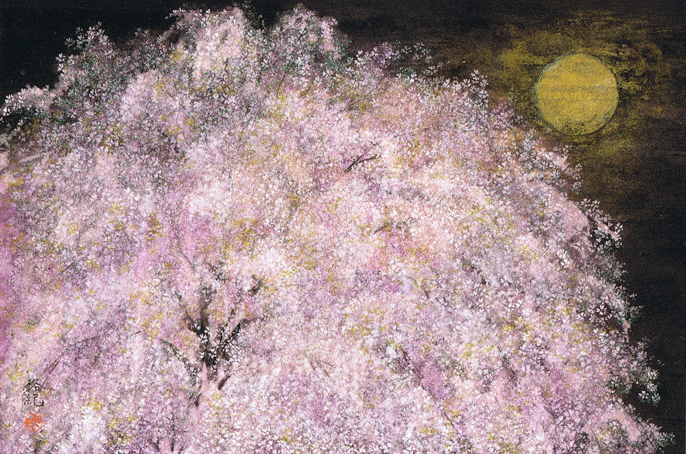 Une magnifique peinture d'un cerisier en fleur (Sakura).